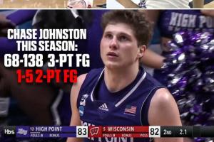 赛季唯一两分球是绝杀上篮!海波特大学后卫约翰斯顿助队爆冷晋级