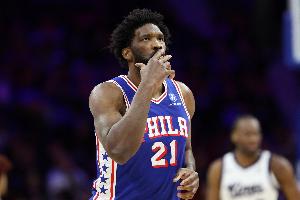 据统计,76人在恩比德过去10场出战的比赛8胜2负,他场均砍下32.4分,三项命中率54/50/85%。