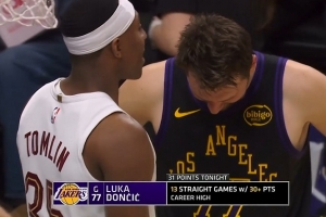 体育资讯4月1日讯 NBA常规赛,湖人对阵骑士,东契奇已经得到31分。